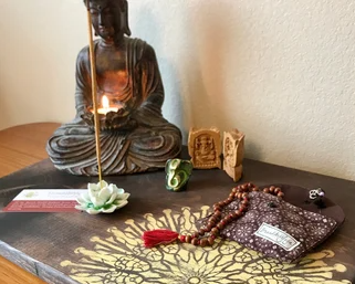Meditation Station – BrandArt Yoga reveals how a simple tray or decorated board can display our treasured meditation artifacts especially when our living space is shared with others. Everything is right at hand.