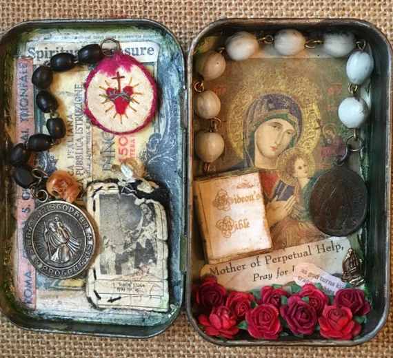 Travel Altar – The Monastery Store offers handcrafted travel altars for folks on the go. The Inner recesses of these wooden chests hold a holy figurine and a supply of incense. It’s not much bigger than a phone.