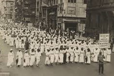 But where did this tradition actually begin? Gathered on June 13, 1908 in London, England Woman’s Sunday, the early suffragists wore white summer dresses to draw attention to their cause. At the time white cotton fabric was inexpensive and within the reach of all. It helped to level out the class differences between the females who were marching for women’s rights. What is often forgotten is that despite how bad things may be for Caucasian women, they bear the brunt of sexual inequality much less than that of those of other races. Keep this in mind.